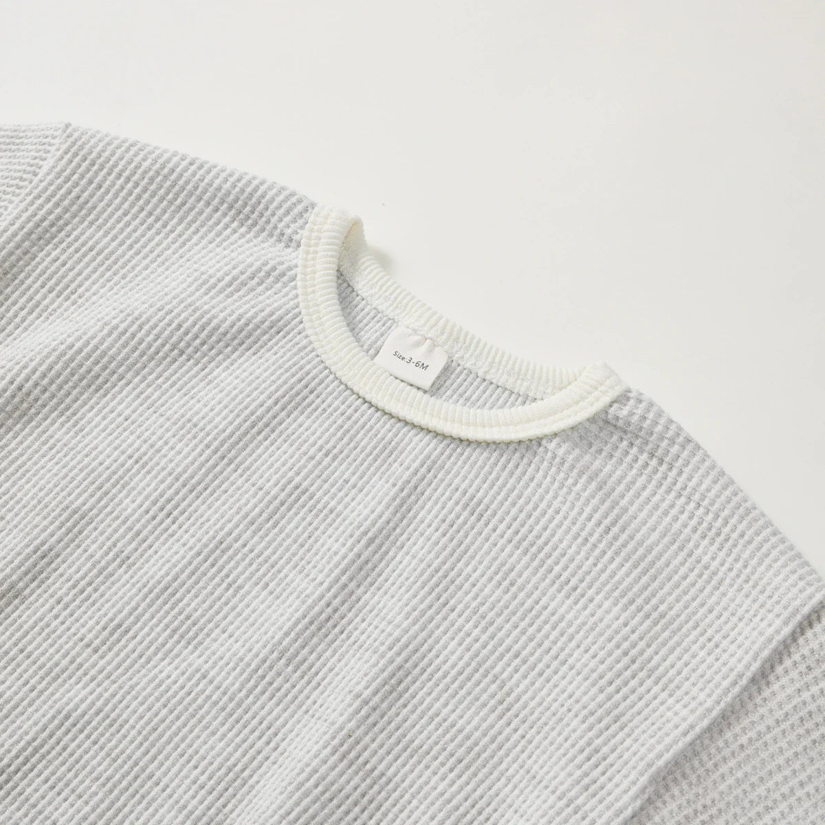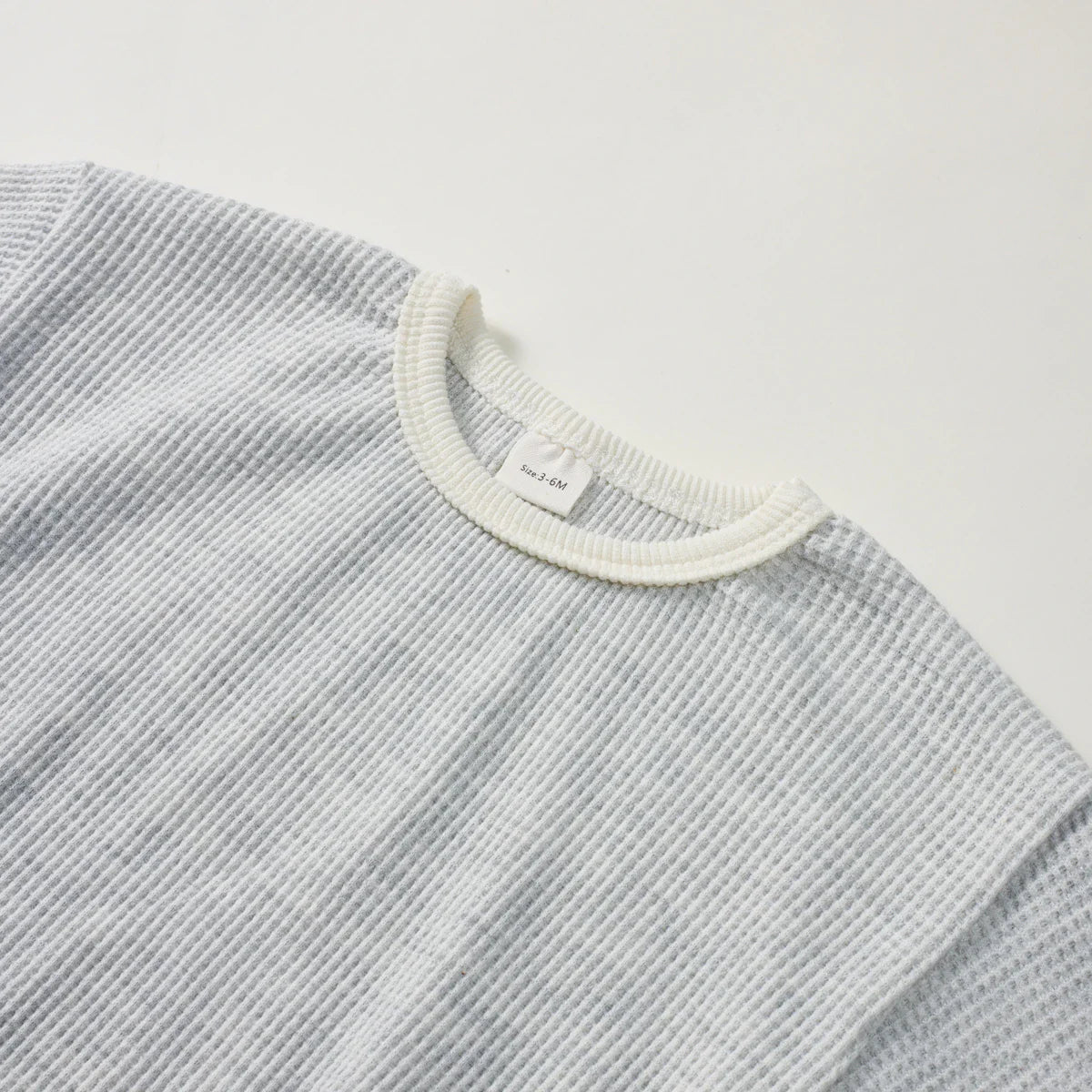 Baby Boys Girls 2Pcs Long Sleeve Waffle Cotton Pullover Crewneck Top + Pants Jogger Set Outfit