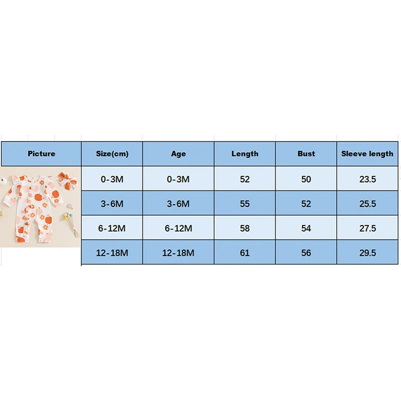 Baby Girls 2Pcs Fall Outfit Long Sleeve Pumpkin Flower Print Jumpsuit with Headband Halloween Clothes Romper Set