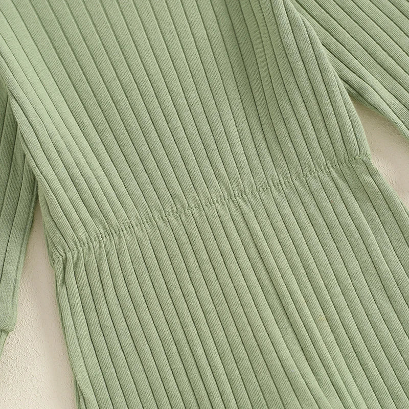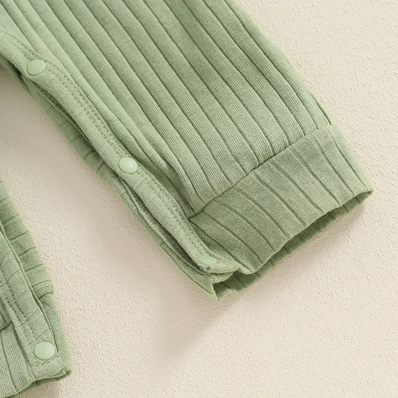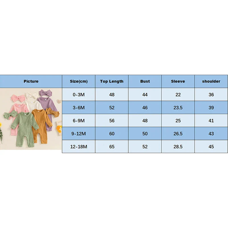Baby Girls 2Pcs Fall Outfit Long Sleeve Round Neck Ribbed Full Leg Jumpsuit with Headband Set
