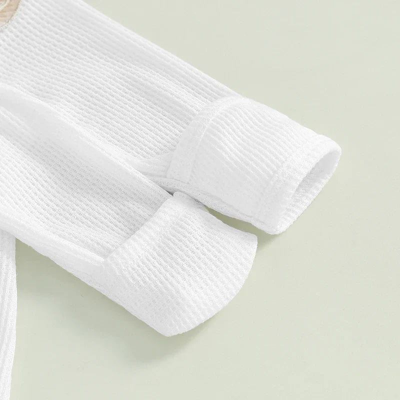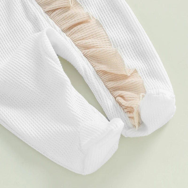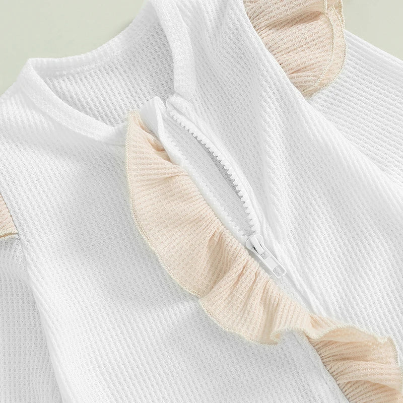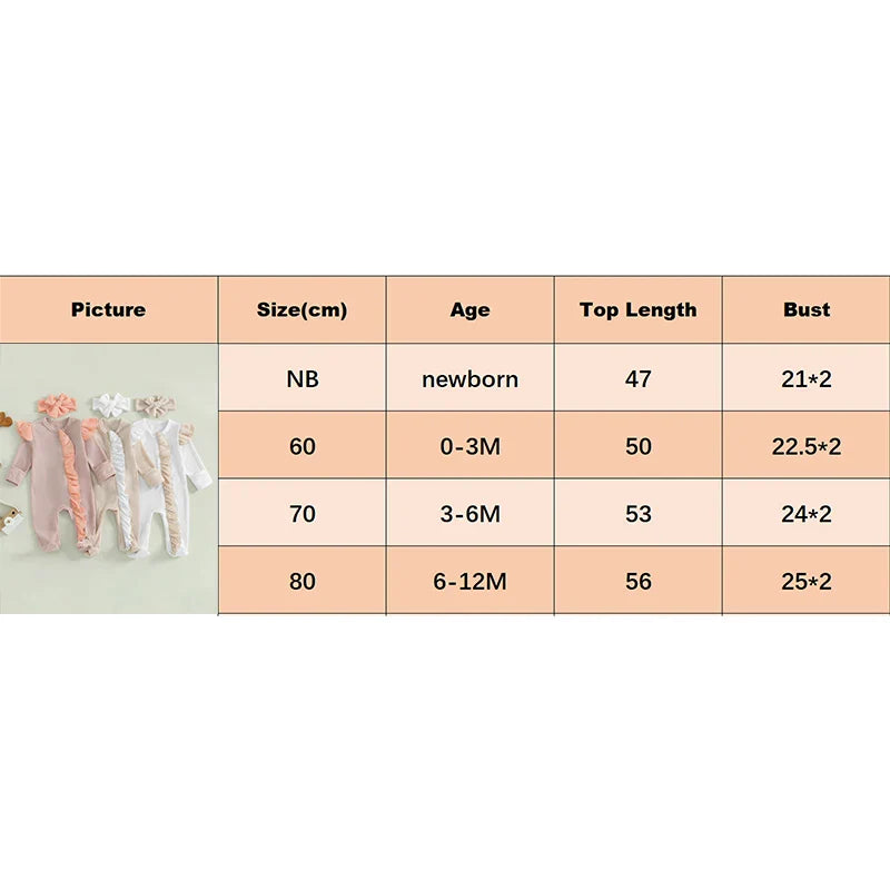 Baby Girls 2Pcs Outfit Long Sleeve Crew Neck Frills Zipper Romper Contrast Color Footies and Headband Set