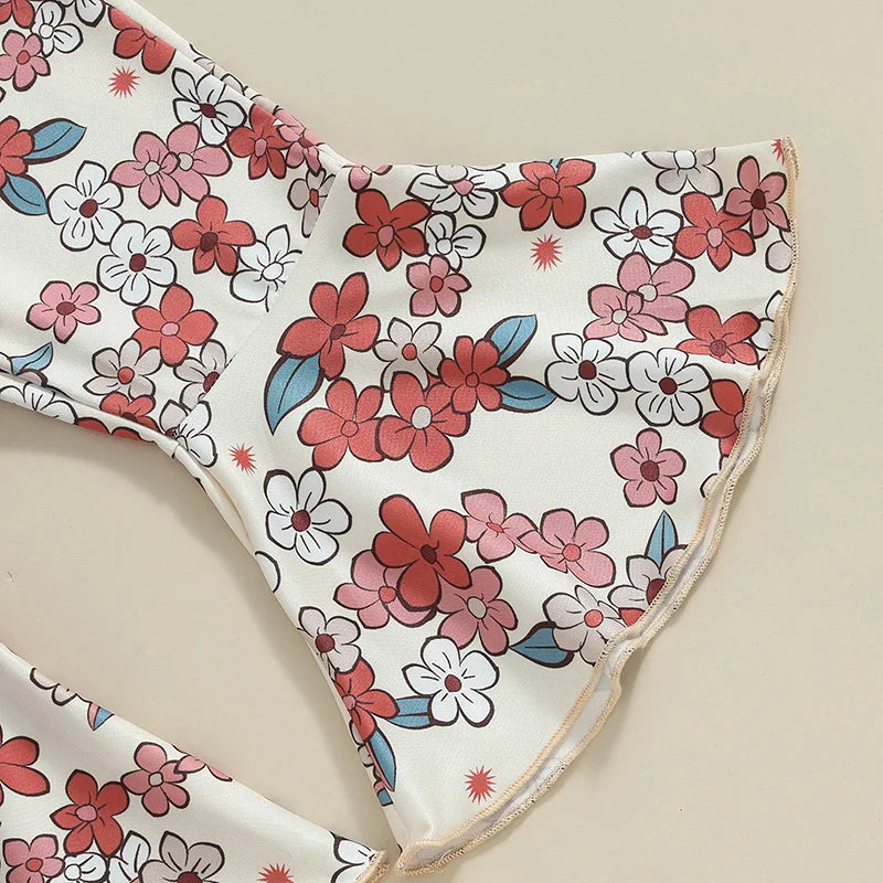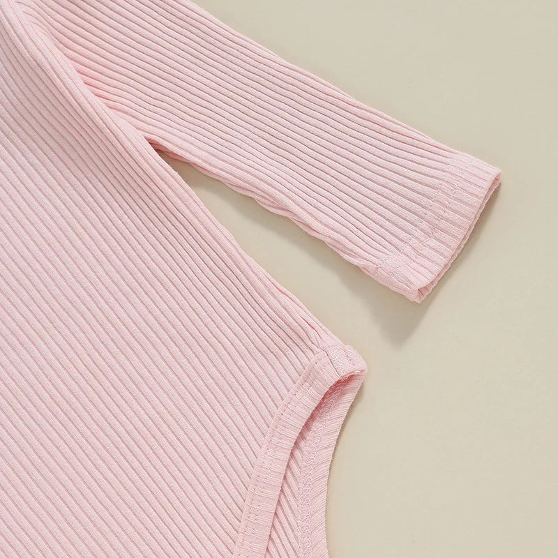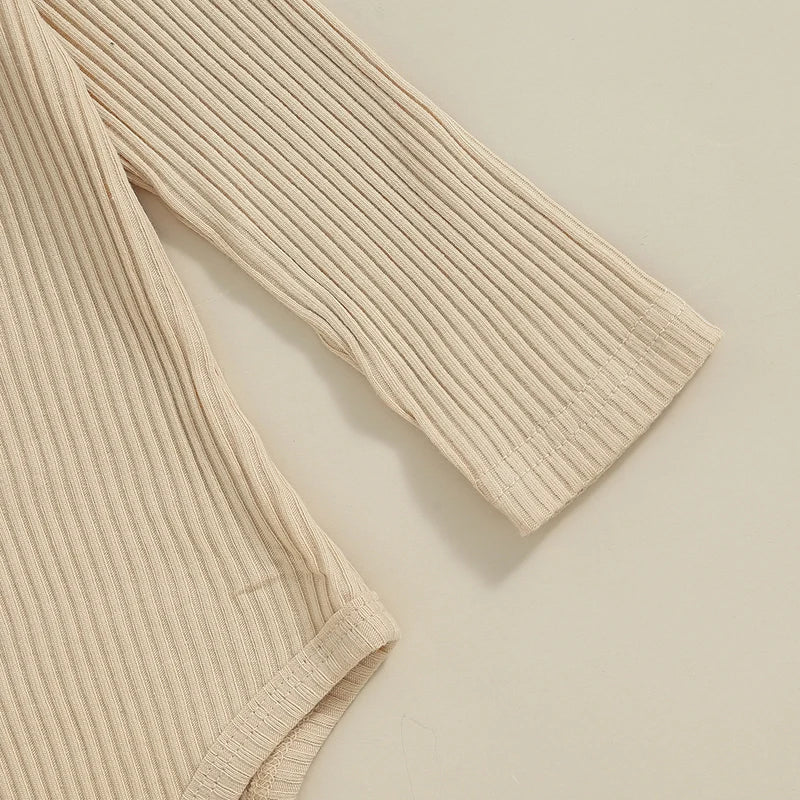 Baby Girls 3Pcs Fall Outfit Ruffle Ribbed Long Sleeve Romper Flower Flare Pants Tie Headband Set
