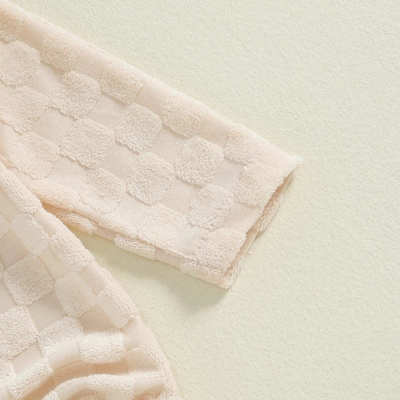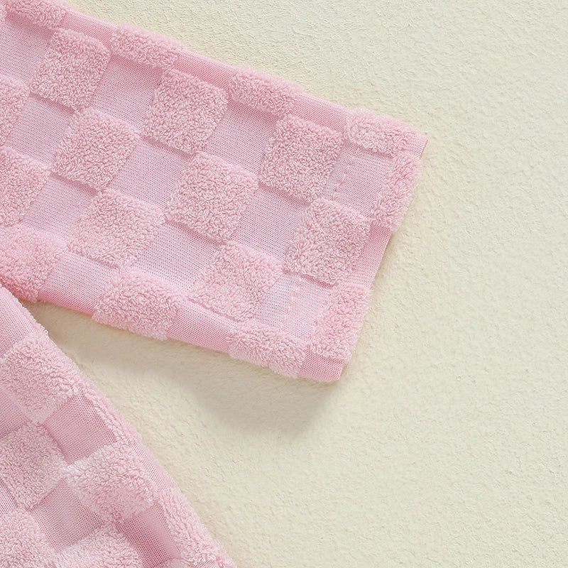 Baby Girls 3Pcs Set Checkered Button Long Sleeve Round Neck Ruffled Romper Long Pants Hair Band Outfit
