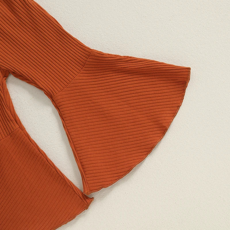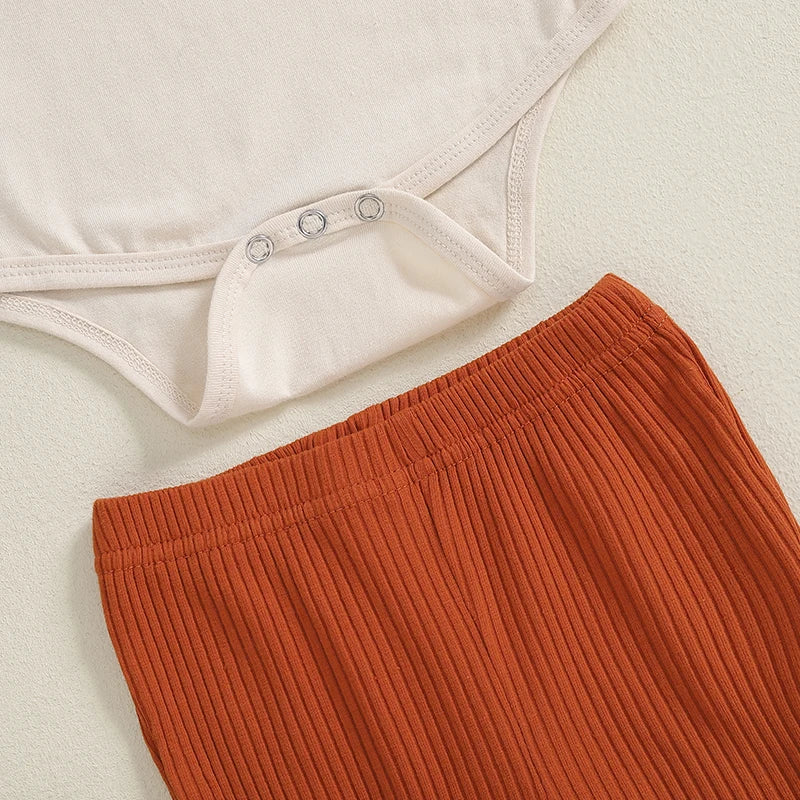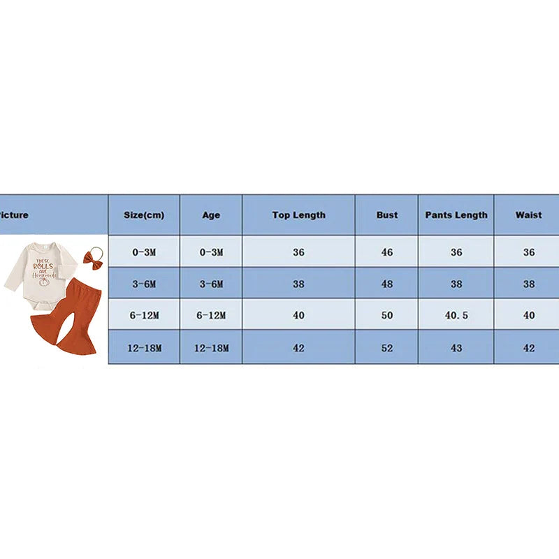 Baby Girls 3Pcs These Rolls Are Homemade Fall Set Letter Pumpkin Print Long Sleeve Romper Ribbed Flare Pants Hairband Outfit