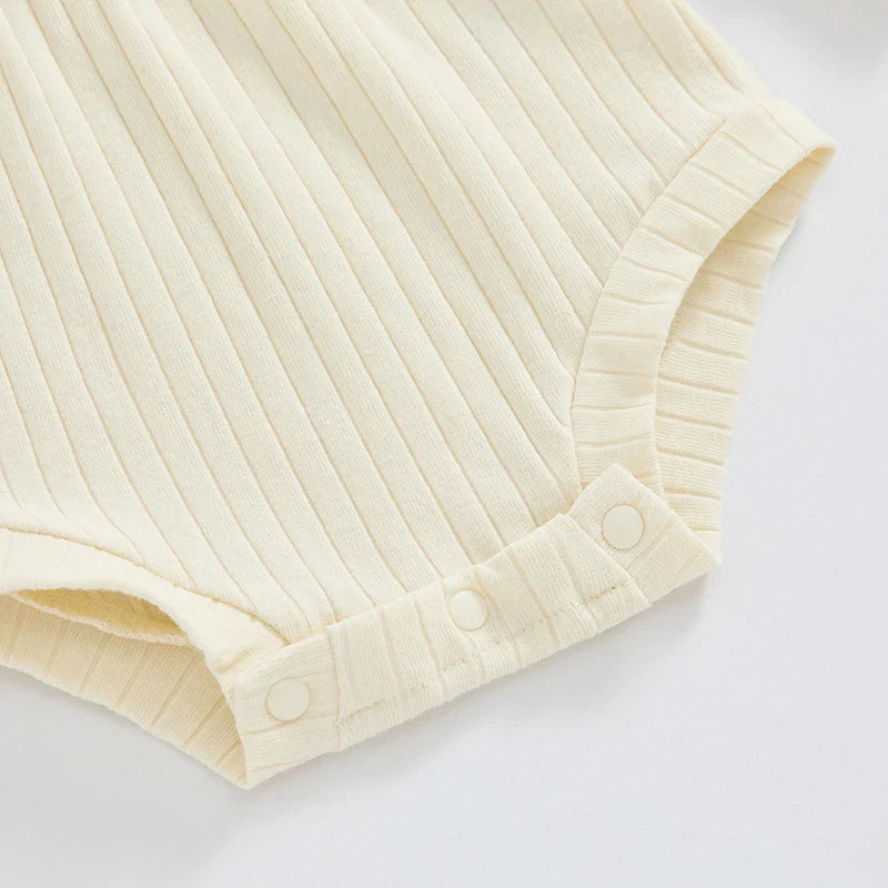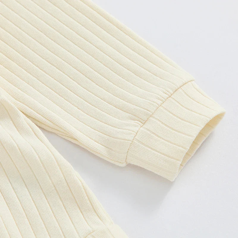 Baby Girls Spring Fall Solid Color Round Neck Long Sleeve Ribbed Romper Bow Headband Set