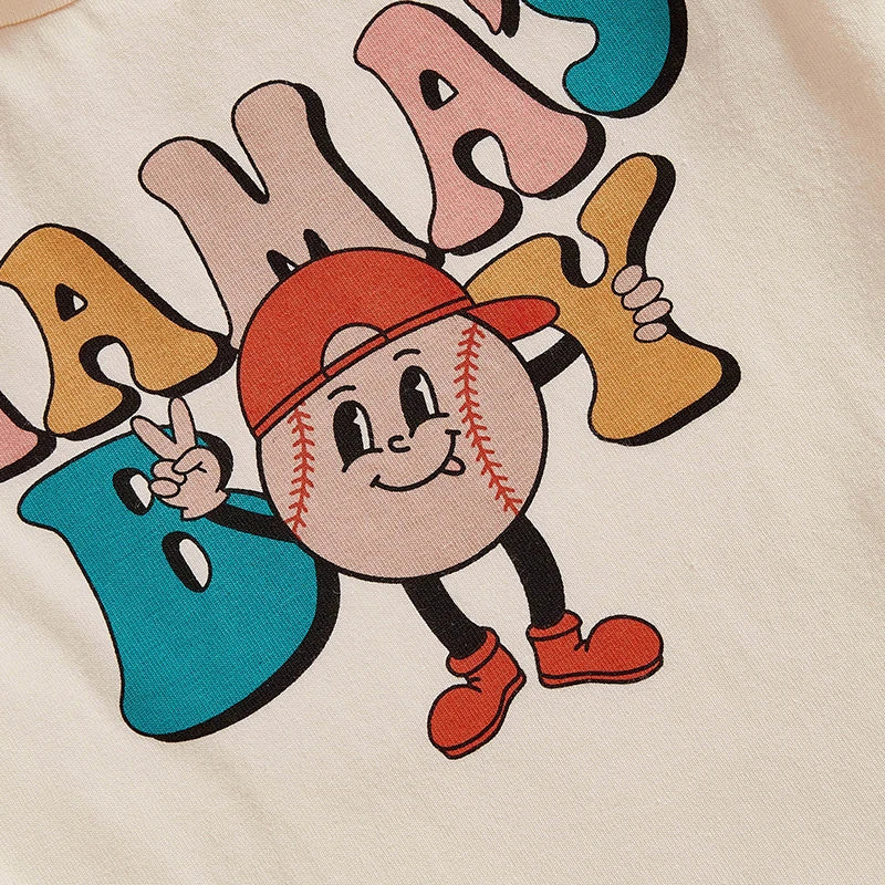 Baby Toddler Boys 2Pcs Mama's Boy Summer Outfit Letter Baseball Print O-Neck Short Sleeve Top with Elastic Waist Shorts Set