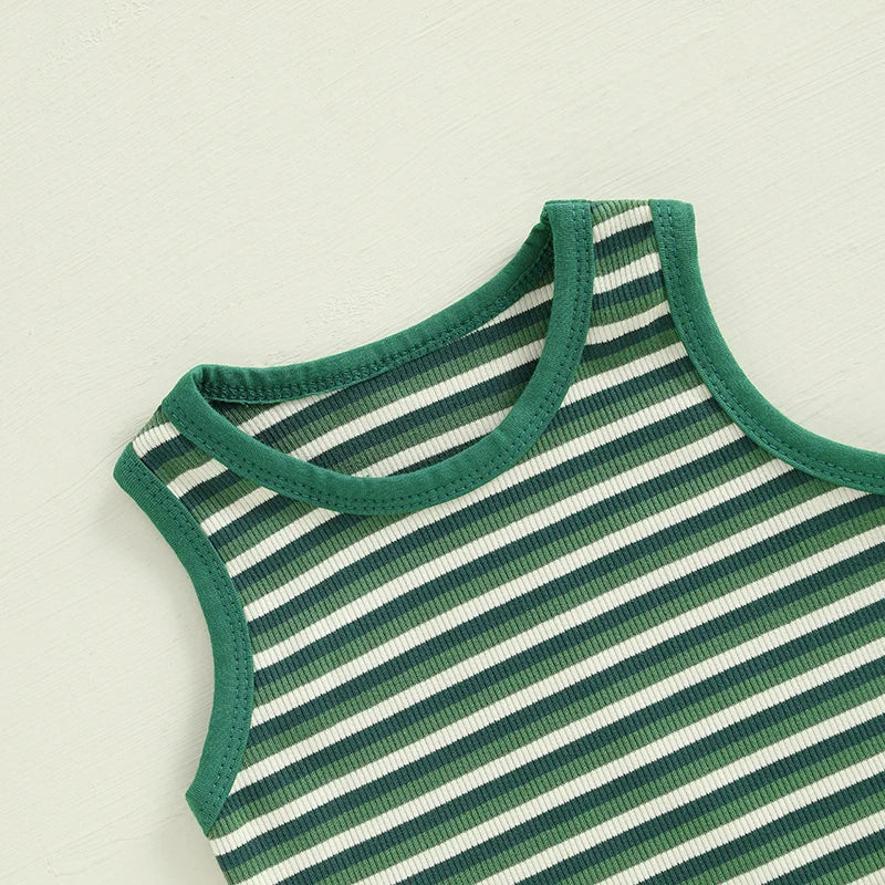 Baby Toddler Boys 2Pcs Striped Dinosaur Outfit O-Neck Sleeveless Tank Top Elastic Waist Shorts with Pockets Set