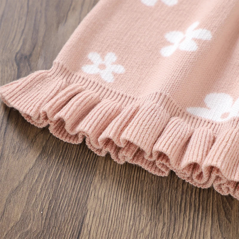 Baby Toddler Girl Long Sleeve Flower Floral Print Ruffle Sweater A-Line Dress