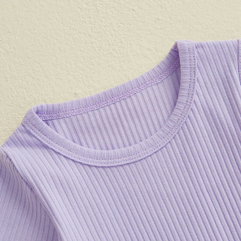 Baby Toddler Girls 2Pcs Ribbed Outfit Solid Color Short Sleeve T-Shirt Top Elastic Waist Ruffle Shorts Set