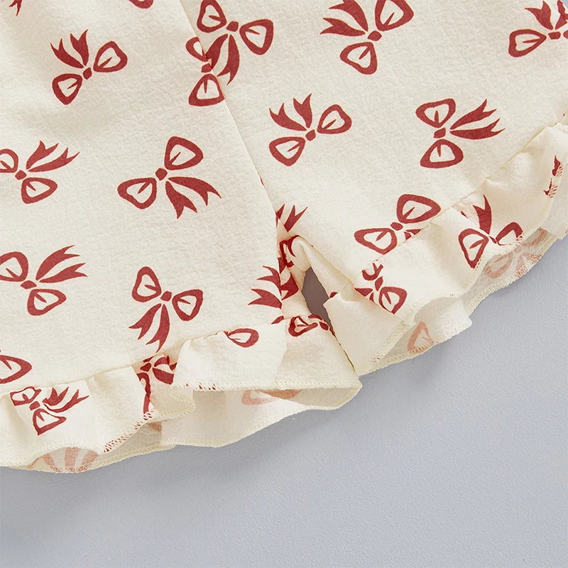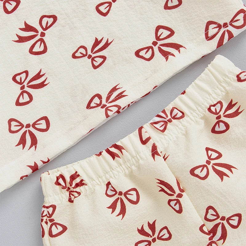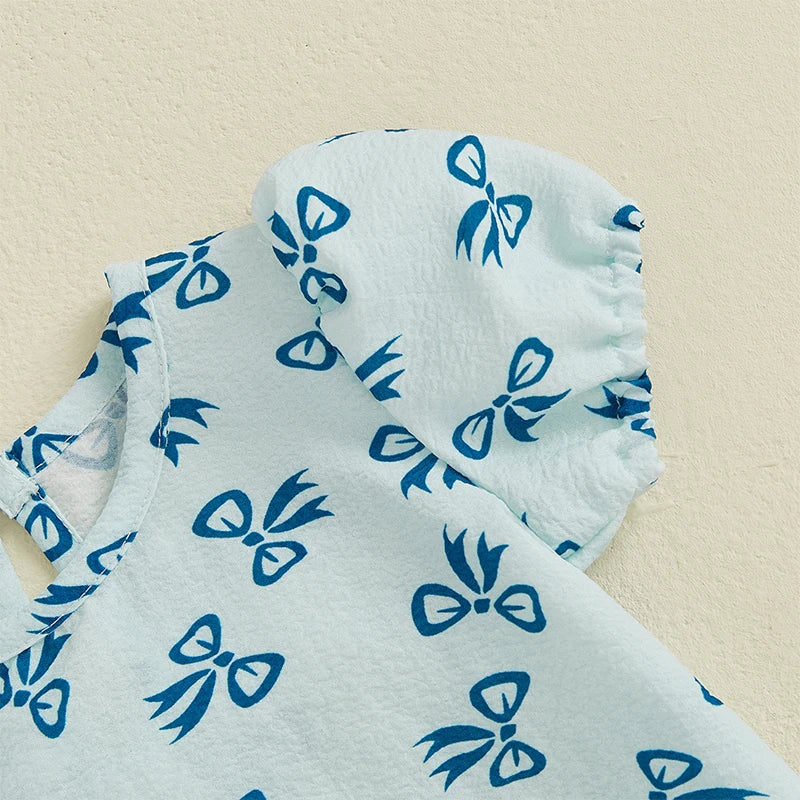 Baby Toddler Girls 2Pcs Summer Outfit Bow Pattern Crew Neck Short Sleeve T-Shirt Top with Ruffled Shorts Set
