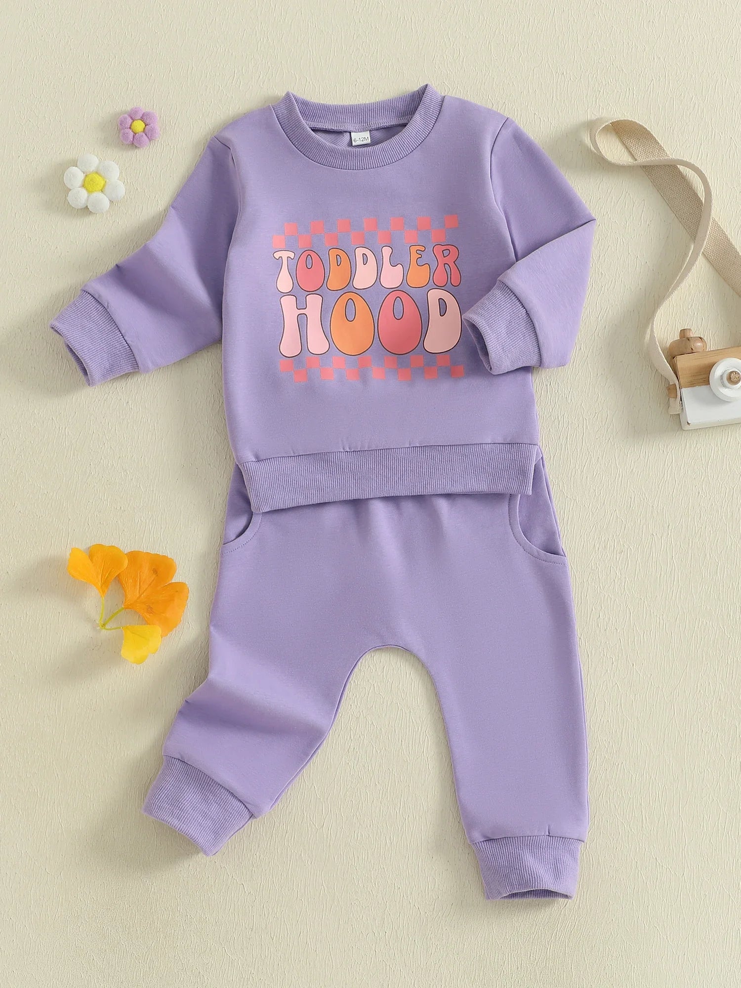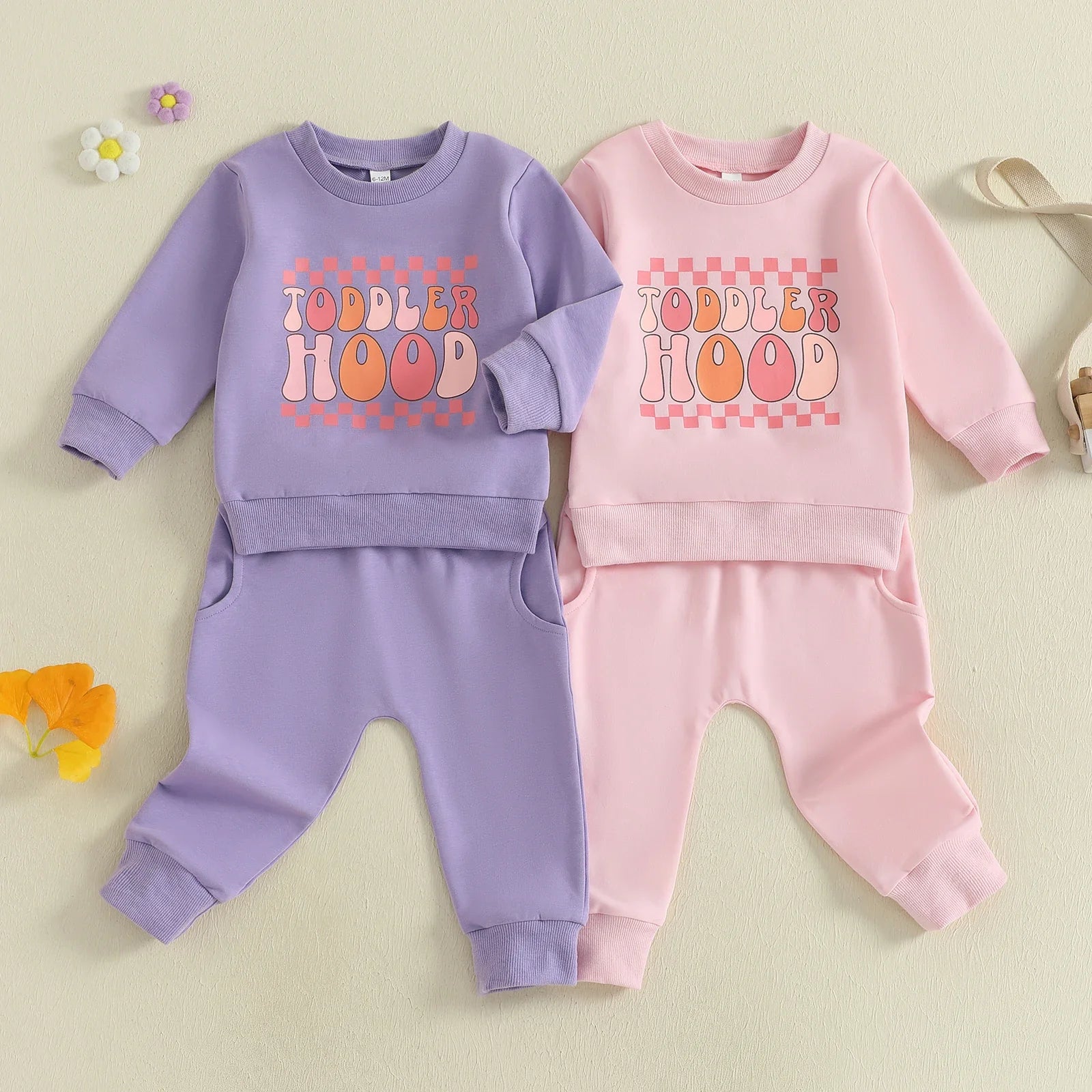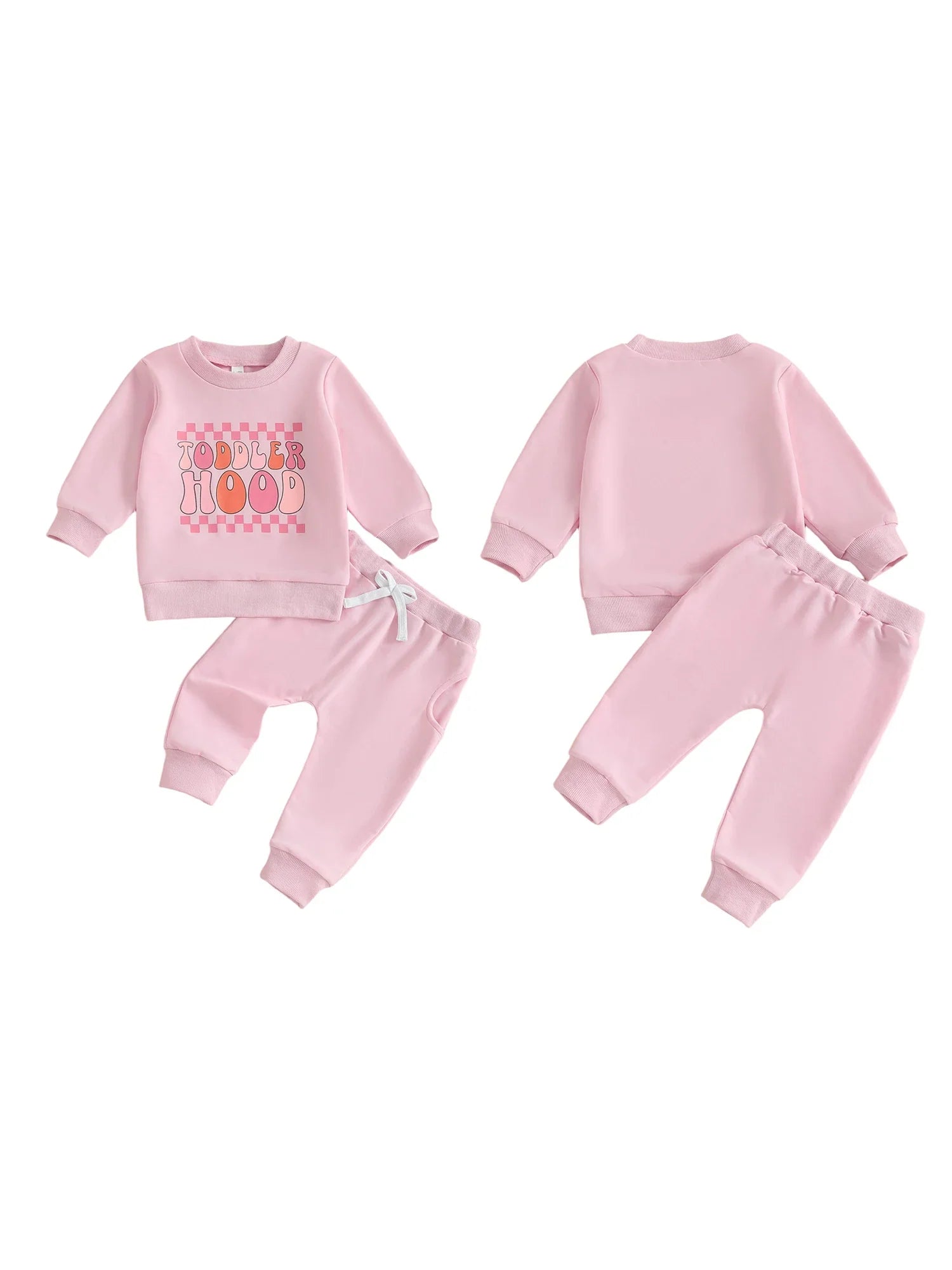 Baby Toddler Girls 2Pcs Toddler Hood Outfit Letters Print Long Sleeve Crew Neck Top with Elastic Waist Pants Fall Clothes Jogger Set