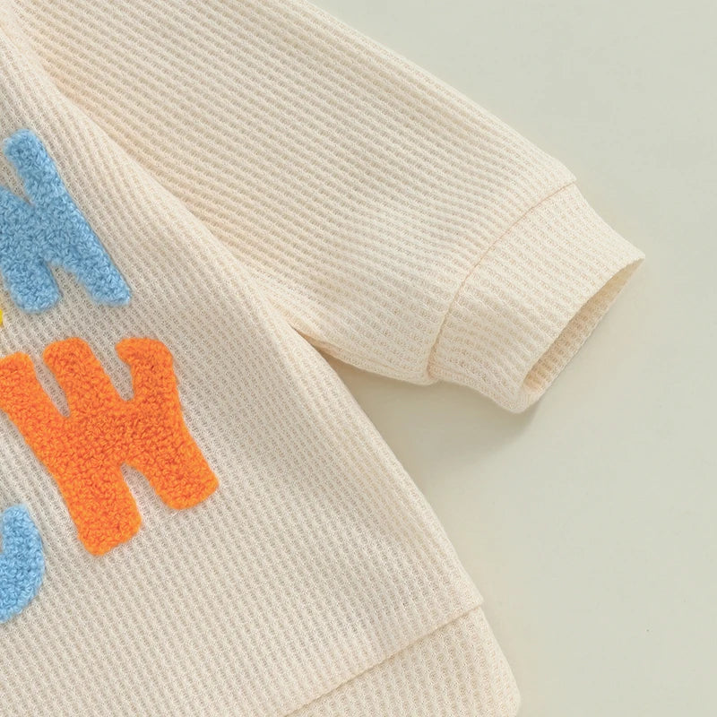 Baby Toddler Girls Boys 2Pcs Cousin Crew Set Long Sleeve O-Neck Embroidery Letter Top with Elastic Waist Pants Outfit Set