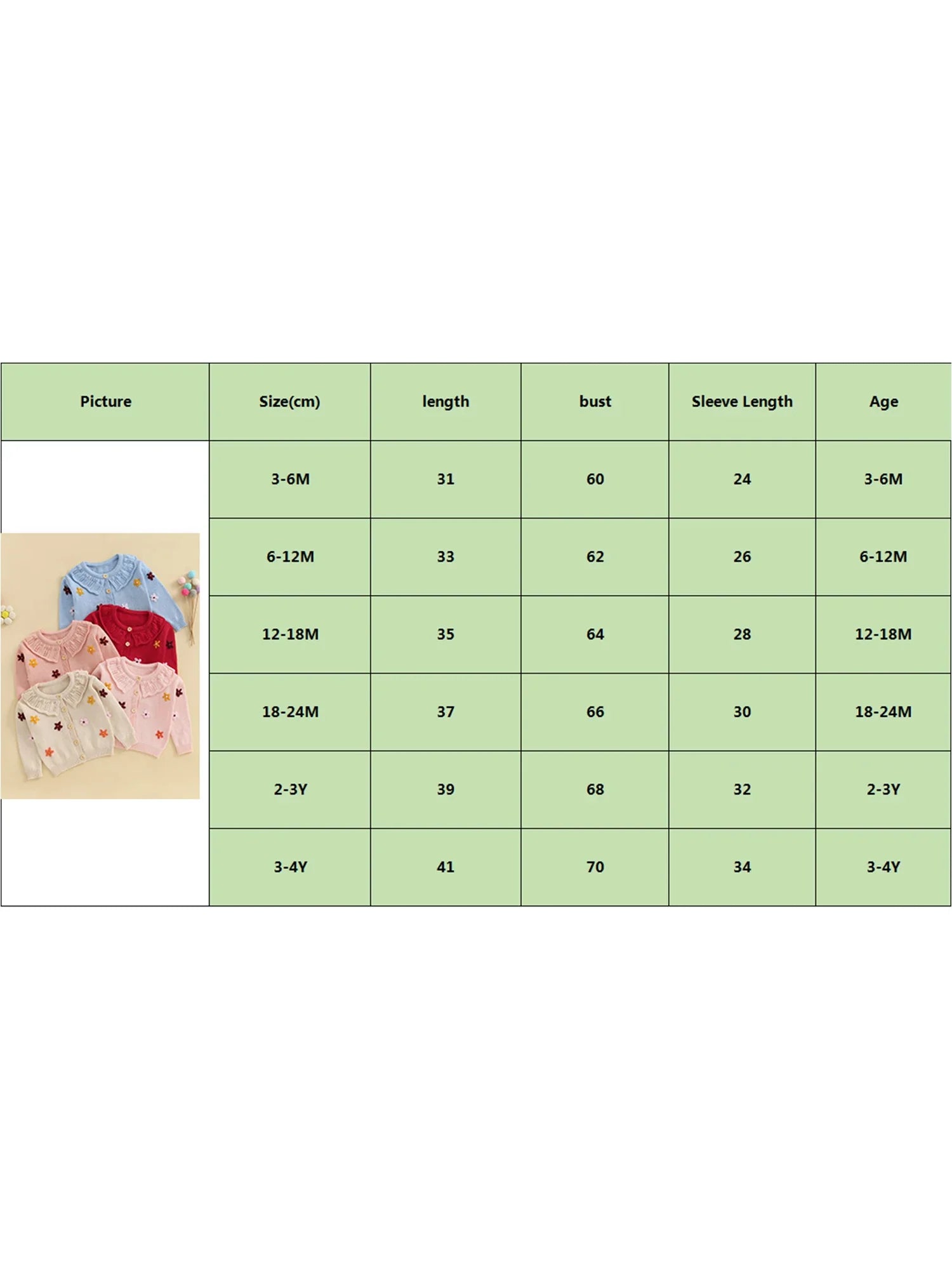 Baby Toddler Girls Cardigan Sweater 3D Flower Design Button Down Long Sleeve Knitted Top