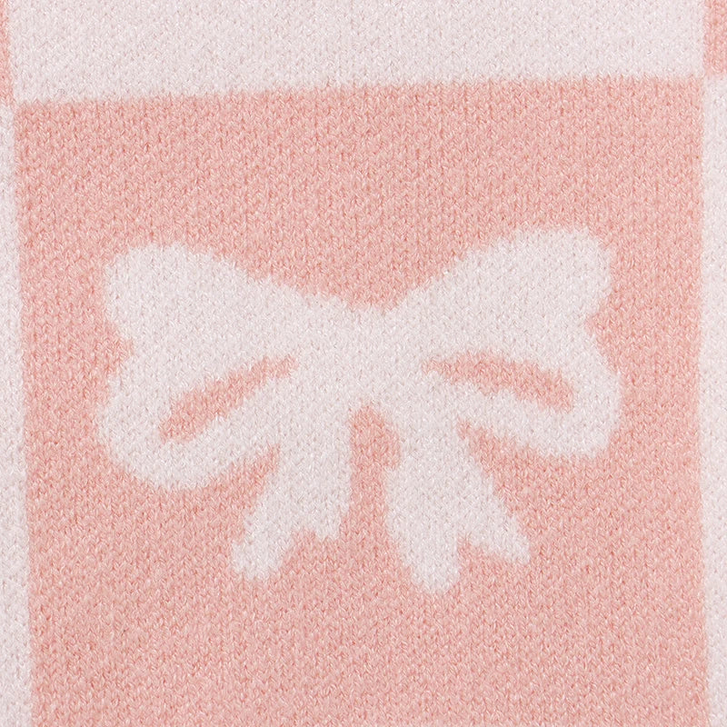 Baby Toddler Girls Sweater Bow Print Contrast Color Checkered Crew Neck Long Sleeve Baby Pullover Fall Top