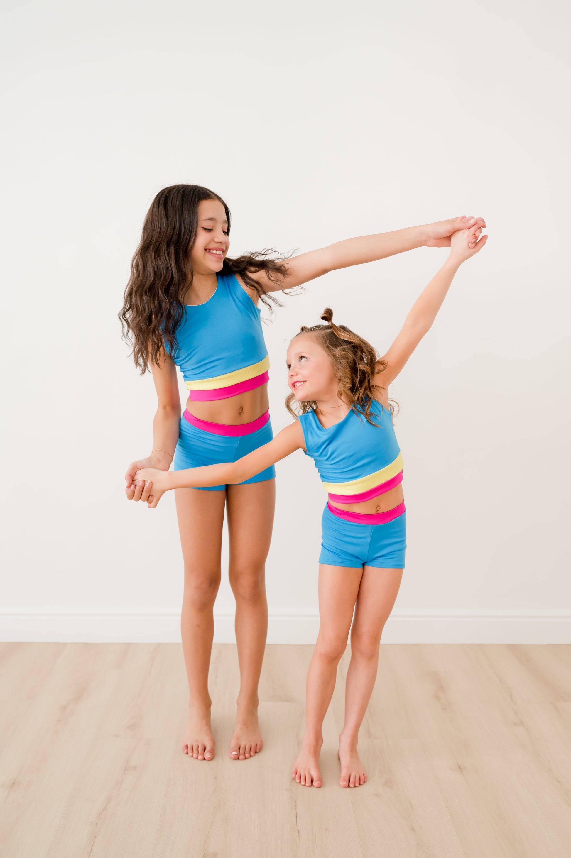 Get ready to dance in style with our Out of the Blue tank set! This 2-piece set features a cute blue colorway with fun pink and yellow accents. Stand out on the dance floor and stay comfortable with this playful and trendy outfit.